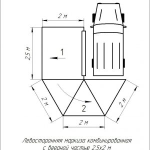 Маркиза автомобильная РИФ комбинированная (прямоугольная с веерной частью) 2,5х2,0 м (правая)