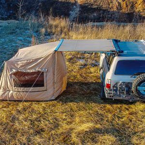 Описание Комбинированный автомобильный тент-маркиза размером 2.5 х 2.0 метра. Жестко крепится к кузову автомобиля или автомобильному багажнику, удобно и быстро разворачивается в походное положение. Отлично защищает от прямых солнечных лучей…